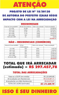 Depois de entrar e sair de Pauta na última semana e ser motivo de uma reunião envolvendo praticamente todos os vereadores e secretários municipais na última segunda-feira, 20, a Mensagem recebeu duas modificações e segue para votação. As mudanças são nos valores. Na mensagem inicial enviada pelo Executivo a Câmara, os Consumidores Residenciais que utilizam entre 51 e 100 Kwh, mensalmente, passarão a contribuir com R$ 2,50 ao invés dos R$ 4,16 propostos. Já os que usam de 101 a 150 passarão a pagar R$ 4,99. Na mensagem original, os consumidores nesta faixa pagariam R$ 8,32. Os demais percentuais continuam inalterados e podem ser conferidos na postagem: http://www.blogdocarloseugenio.blogspot.com.br/2013/05/aumento-na-taxa-de-iluminacao-publica.html.